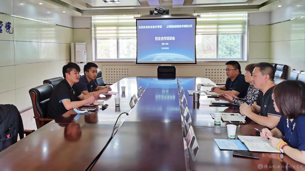 2020年9月15日,上海阑途信息技术有限公司校企合作部高级经理周毅、宝鸡城市经理田雷来英国365进行校企合作洽谈交流。学校党委委员、副院长徐圣月、汽车工程学院副院长李靖、校企合作处副处长田正本等接待了周毅一行,并举行了校企洽谈会。