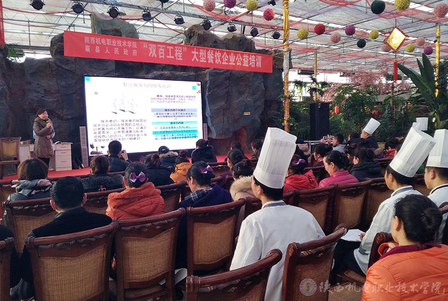 本次培训为期三天(1月16日-18日),讲师团队由宝鸡市餐饮行业国家级考评员杨宝雪老师、宝鸡教育学院教授辛瑜亮,省第二商贸学校高级讲师徐安平组成,分别从餐饮基础知识基本技能、宴会服务与管理、团队建造和智慧餐饮等方面进行讲解。