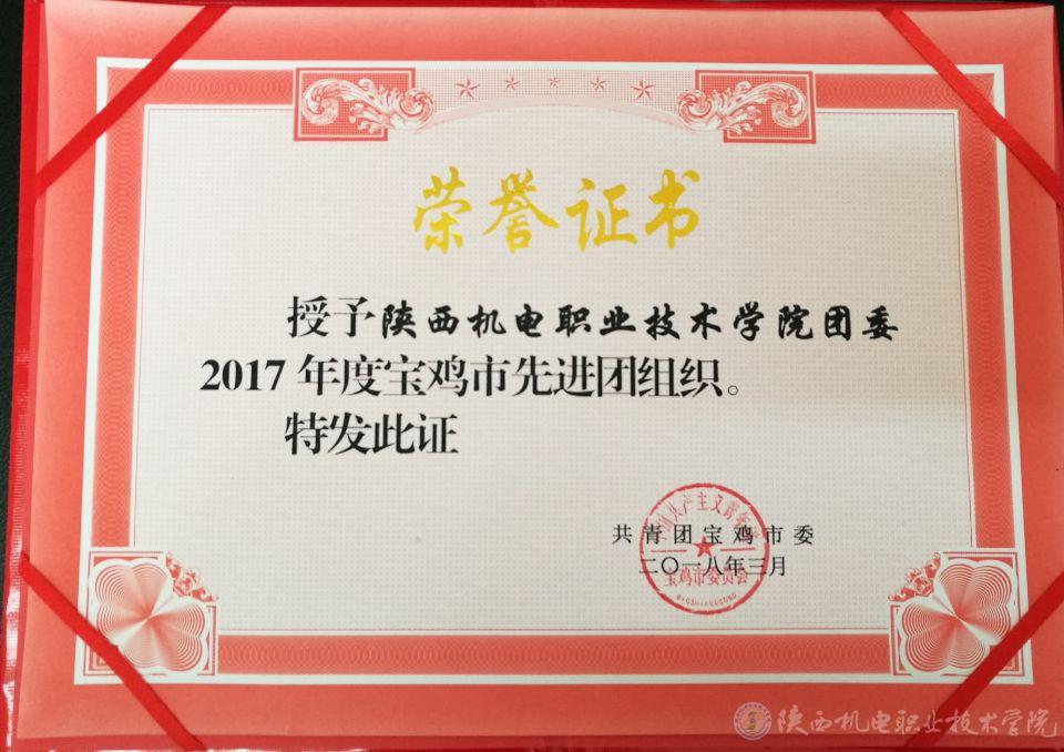 会议对共青团工作优秀县区、市直先进团组织、共青团员先锋岗(队)进行了表彰。我院团委被评为2017年度宝鸡市先进团组织。