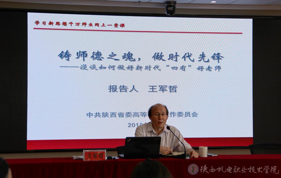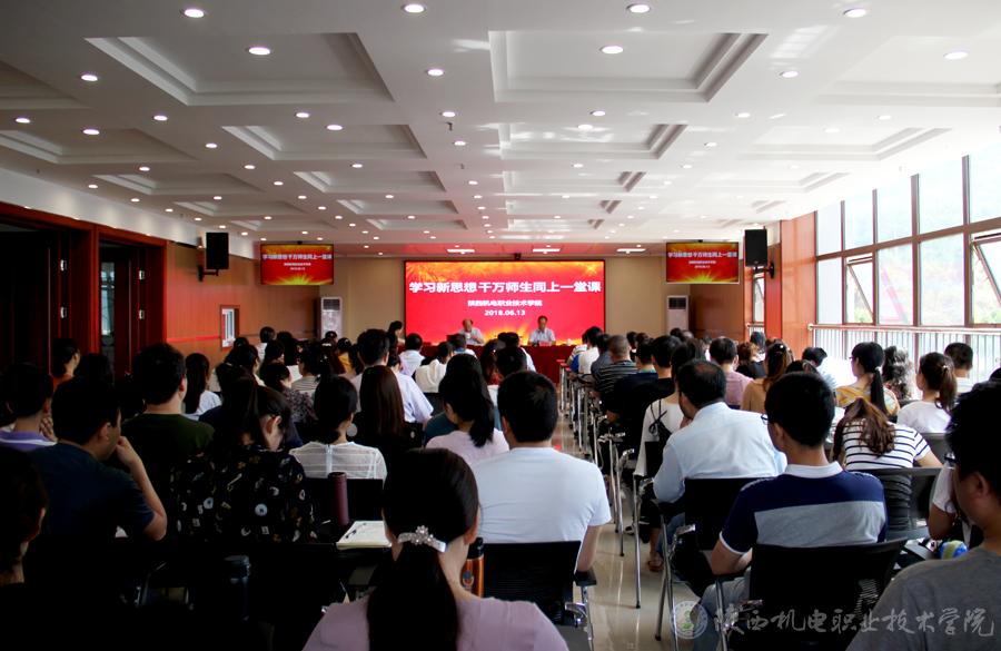 为深入学习宣传贯彻习近平新时代中国特色社会主义思想,特别是习近平总书记在北京大学师生座谈会上和纪念马克思主义诞辰200周年大会上重要讲话精神,根据教育部和中共陕西省委高教工委关于在陕西高校开展“学习新思想千万师生同上一堂课活动”要求,6月13日上午,学院在机电汽车大楼四楼多功能厅主会场和大礼堂分会场,同步举办了现场授课报告会。讲师团成员,西安外国语大学校长王军哲、延安大学学工部副部长乔剑莅临我院为师生作报告。学院党委书记、院长伊逊智等领导班子成员出席大会,全院在编在岗教职工及17级高职全体学生聆听了报告。党委副书记、纪委书记邓新治主持会议。