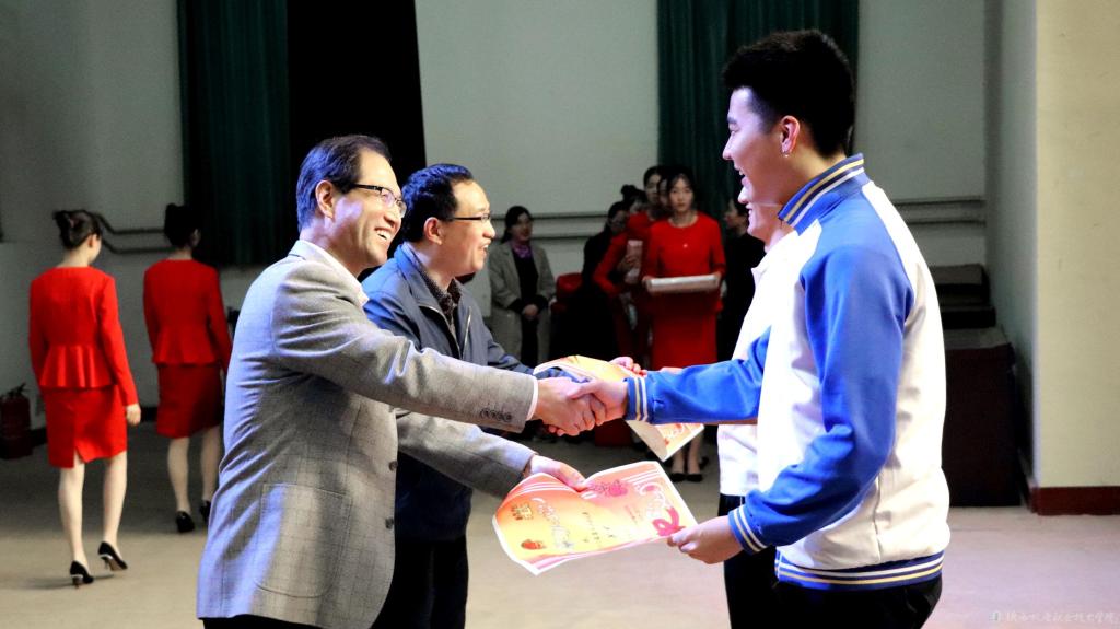党委书记伊逊智与党委副书记、院长向纪明为获奖班级颁奖