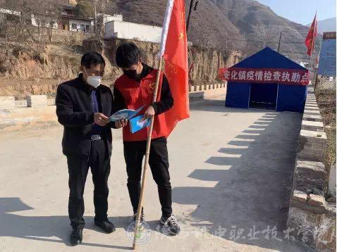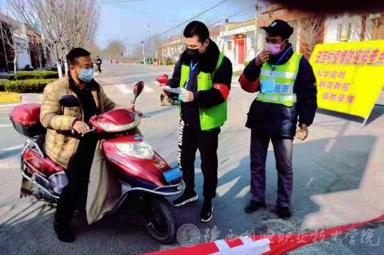 16汽修五年2班刁佳在了解到疫情后,主动报名参与疫情防控工作。安排给他的工作是对街道(凤翔县田家庄镇街道西边路口)的来往车辆、人员进行排查登记。