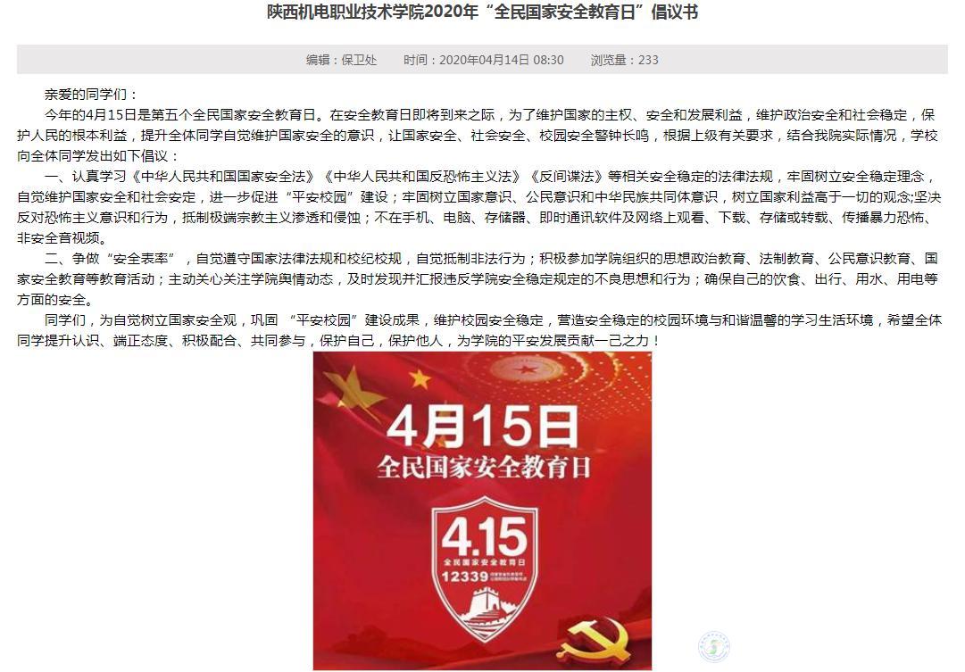 4月15日是我国第五个全民国家安全教育日,为深入贯彻习近平总书记总体国家安全观,提高师生国家安全意识,增强国家安全责任,结合当前疫情防控形势和工作实际,英国365通过多种形式组织开展主题活动。