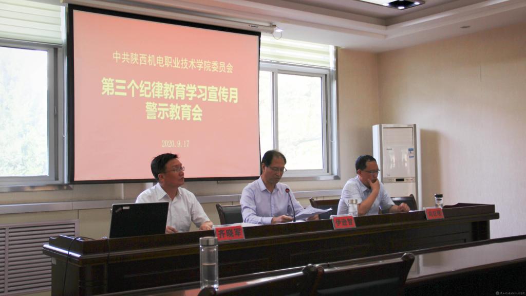 按照《中共陕西省纪委关于在全省开展第三个纪律教育学习宣传月活动的通知》要求,9月17日学院在行政楼三楼东会议室召开以“守初心、践使命、严纪律、勇担当”为主题的第三个纪律教育学习宣传月警示教育会。学院党委书记伊逊智出席会议并讲话,会议由学院党委副书记、纪委书记齐晓军主持,学院党政领导班子成员、中层干部参加会议。