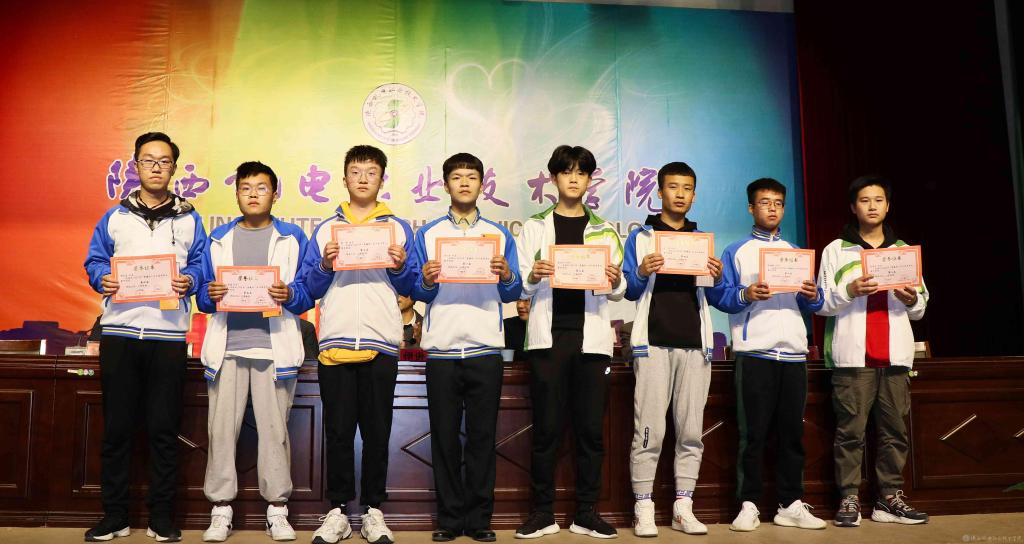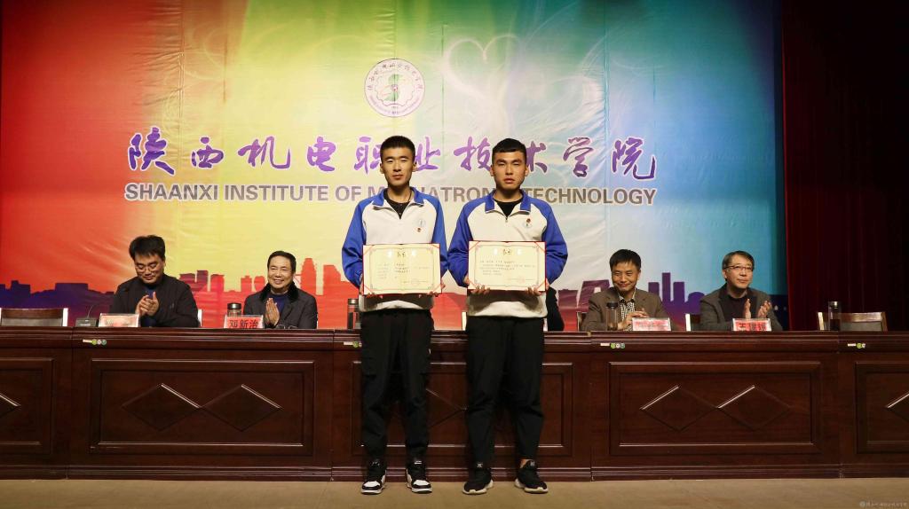 第十届“挑战杯”陕西省大学生创业计划竞赛中,《南乔易GO街-靖远枸杞》项目获得省赛金奖,《果蔬授粉“神器”》项目获得省赛铜奖。校领导为获奖学生颁奖。