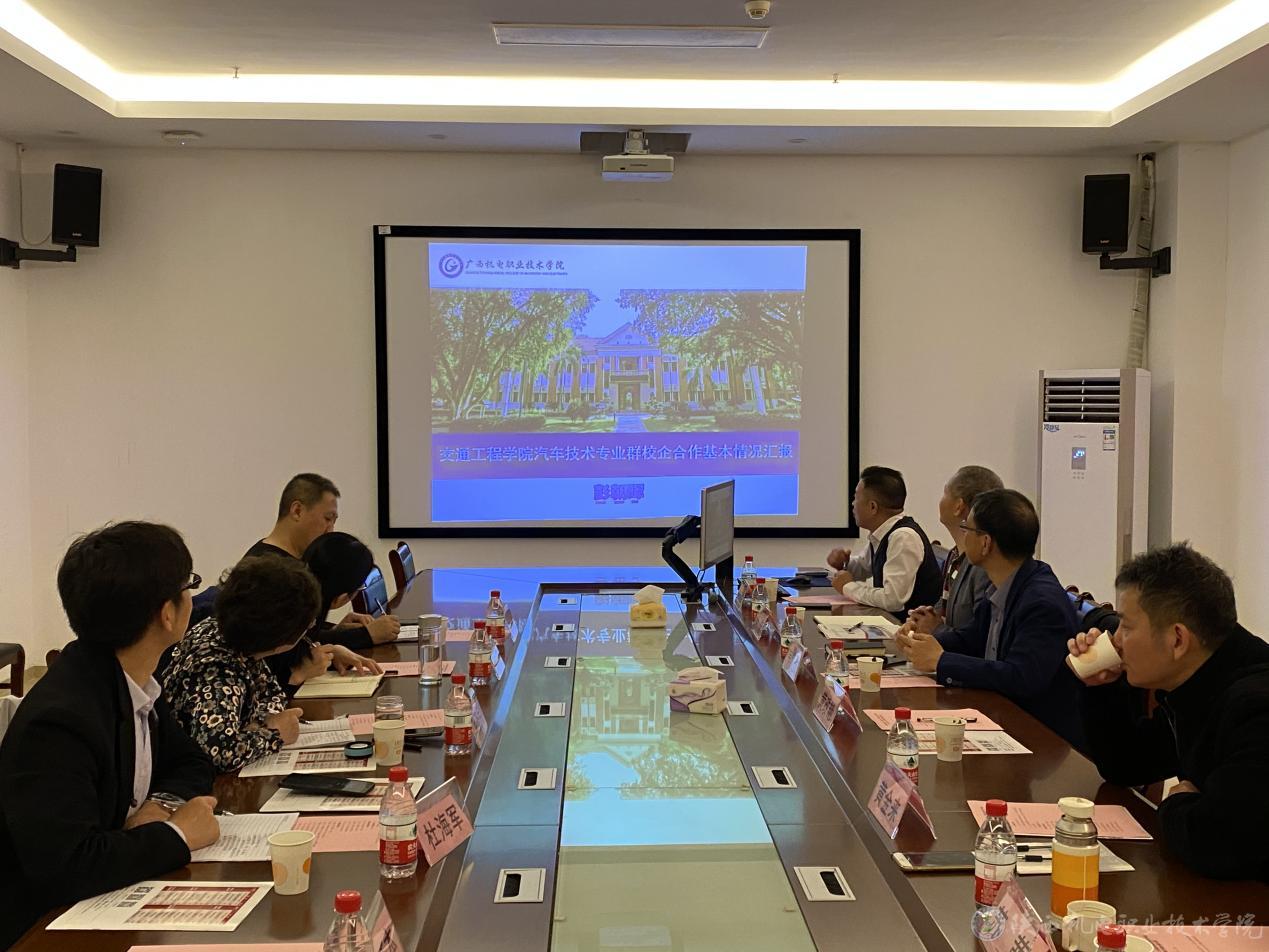 黄政艳致欢迎辞,介绍了广西机电职业技术学院发展历程、专业布局、发展愿景、校企合作等情况;徐圣月对黄政艳等的热情接待表示感谢,介绍了英国365专业设置、新校区建设、校企合作等情况。汽车工程系大师工作室负责人、国家教学名师彭朝晖做了交通工程学院汽车技术专业群校企合作情况报告,并就吉利产业学院建设进行汇报讲解;与会人员还就工学交替、人才培养、双高建设、产业学院建设等情况进行交流探讨。