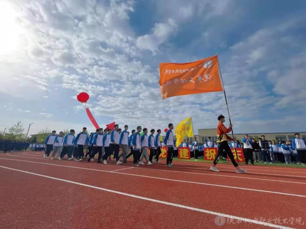 伴随着激情欢快的《运动员进行曲》,国旗方队、校旗方队、彩旗方队、裁判员方队、建党百年标志方队以及各二级学院方队依次入场,方队口号嘹亮、步伐整齐、精神抖擞,引来阵阵喝彩。
