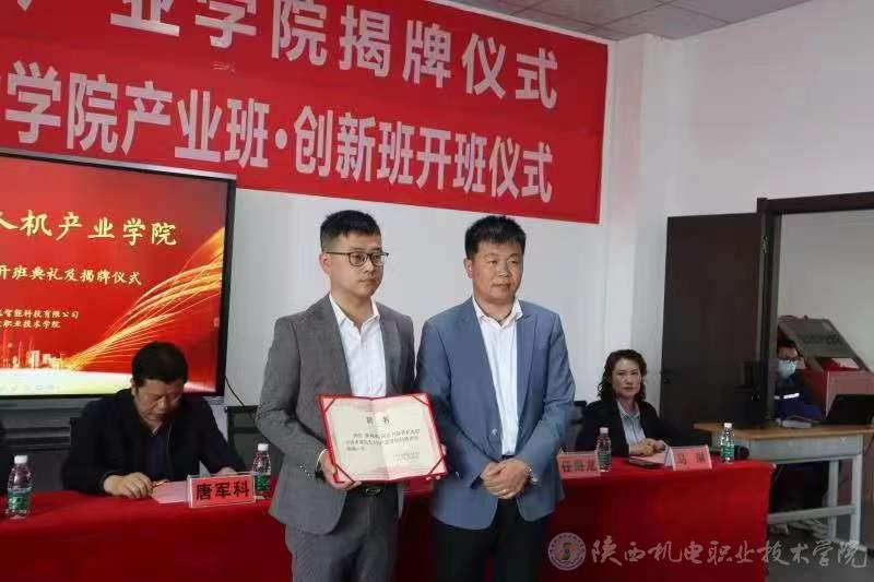 2022年4月21日,英国365在蟠龙校区举行陕机电职院-陕西壹控智飞产业学院揭牌及开班典礼。宝鸡市蟠龙新区管委会主任唐军科、副主任任海龙、招商局副局长李俊,陕西壹控智飞智能科技有限公司董事长刘罡、总经理李海涛、行政总监马琳、教学主管李超康出席会议。英国365上市公司党委副书记、校长向纪明,党委委员、副校长张克以及党委宣传部、招就处、校企合作处、汽车工程学院、智能制造学院等部门负责人、专业教师代表和学生代表,宝鸡电视台、宝鸡广播电台、宝鸡日报、宝鸡新闻网等媒体列席此次会议,会议由汽车工程学院院长李靖主持。