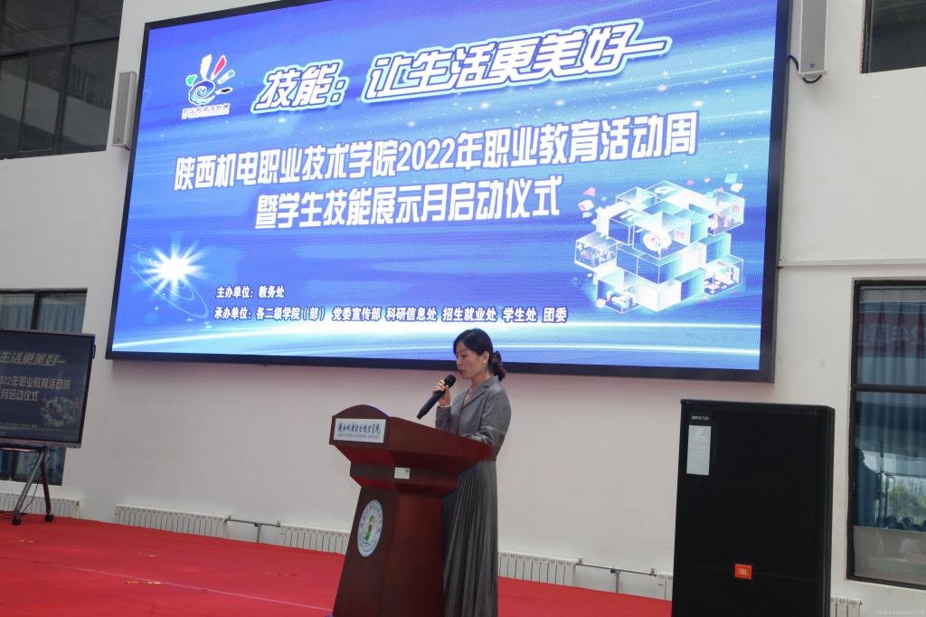伊逊智、向纪明、田浩荣、张克共同启动2022年职业教育活动周暨学生技能展示月活动。随后,全校师生在启动仪式现场共同参观了技能作品展。
