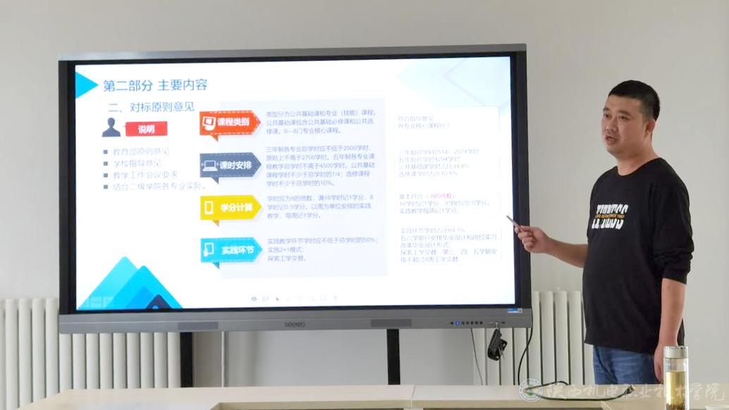 张克对人才培养方案修订提出几点要求:一是人才培养方案的修订要积极征求合作企业、学生家长、行业协会意见建议;二是教务处统一总学时统计标准,各二级学院精减课时,总课时量不得超过2550学时;三是“2+1”模式再细化,人才培养方案要体现校企合作、产教融合因素;四是调整、细化课程名称,课程名称要体现职业性、可操作性,突出职业教育特色;五是人才培养方案要体现工学交替、学分置换;六是以群建院,参照省级双高建设标准,制定校级双高专业群建设方案,对应“一平台”、“一高地”,体现专业群理念。