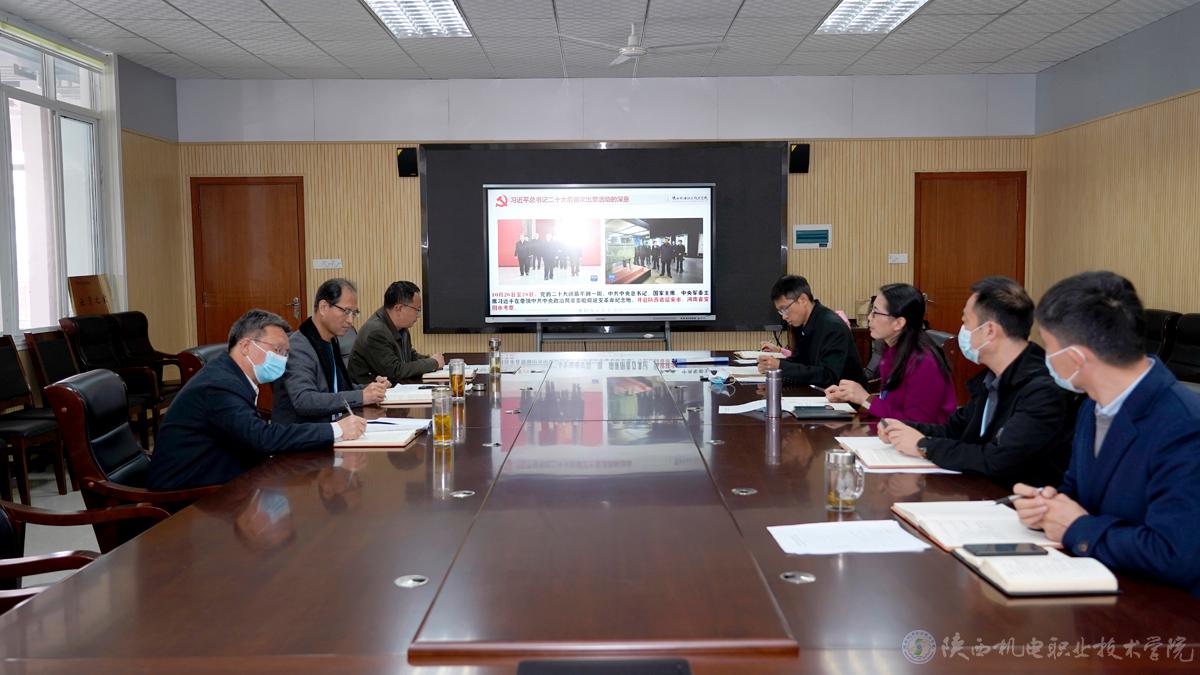 会议强调,深入学习贯彻习近平总书记在中共中央政治局第一次集体学习时的重要讲话精神、在瞻仰延安革命纪念地时的重要讲话精神,在全面学习、全面把握、全面落实上狠下功夫,切实把思想和行动统一到党的二十大精神上来、统一到习近平总书记重要讲话精神和党中央决策部署上来,坚定不移把党的二十大提出的各项目标任务落实到学校改革发展全过程、各方面,为全面建设社会主义现代化国家、全面推进中华民族伟大复兴作出陕机电贡献。