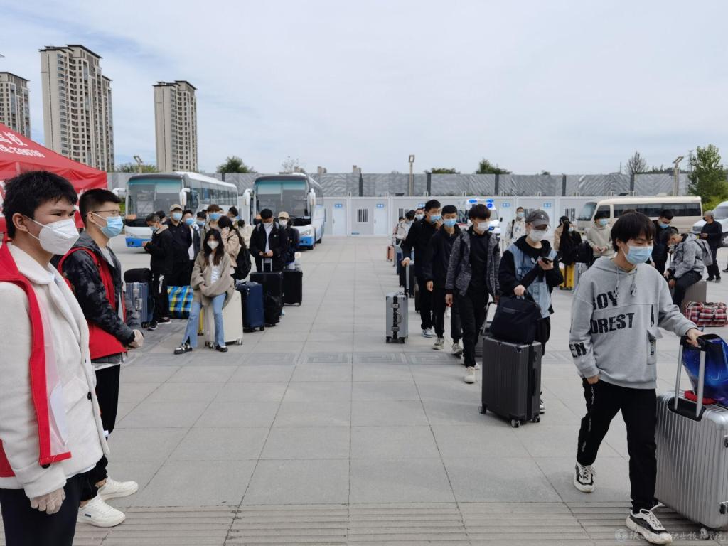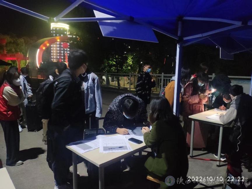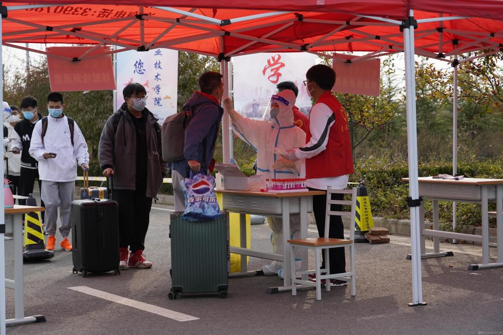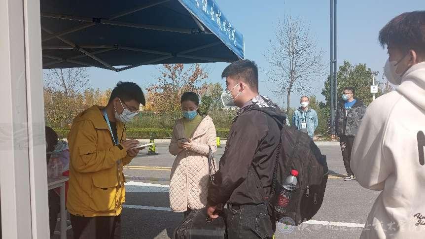 老师们早已准备好迎接每一位回家的孩子。“先做核酸”志愿者提醒到。学生们间隔一米线,戴好口罩,依次进行核酸检测。“大家按照二级学院排队登记”老师亲切的声音在耳畔响起,老师们详细询问学生返校的信息,如乘坐什么交通工具,车次,车牌号……“这位同学按照疫情防控要求需要居家监测”,“好的,请同学这边来先登记信息”。从校门口的扫码到进校后的核酸、登记排查,每一个环节,老师们都做到了精准。