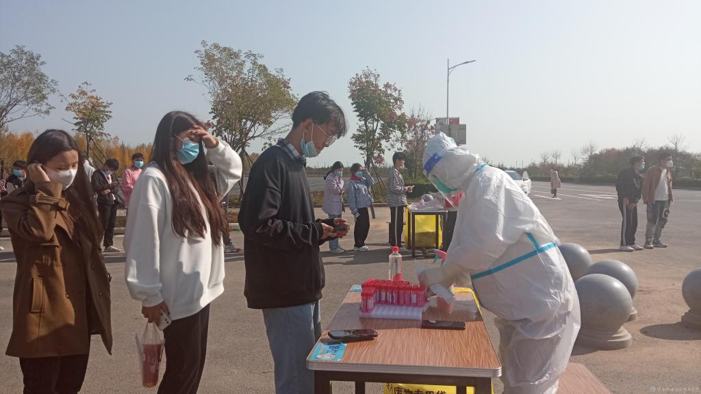 为筑牢疫情防控屏障,保障全校师生安全,营造安全无风险的学习、工作环境,按照学院防疫要求全校师生和第三方人员每天进行全员核酸检测。在核酸检测现场,大家有序排队,做到了间隔一米,戴好口罩,有序检测,共同筑起了一道防疫安全线。