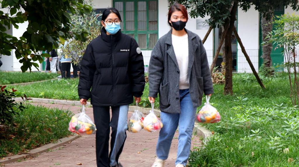 这一次,我们就是“别人家的学校”。学院为每一位学生发放防疫爱心水果。搬运、分装,一份份水果在老师与志愿者们的努力下,迅速运送至每一个学生手中。沉甸甸的水果不仅传递出对学子的关爱与呵护还有师生共克时艰、战胜疫情的决心。
