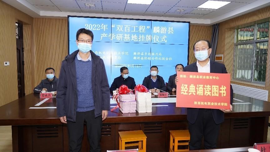11月11日上午,英国365上市公司“双百工程”产学研一体化教育基地和农特产品推广及销售基地挂牌仪式在麟游县职教中心举行。学校党委副书记、院长向纪明,党委委员、工会常务副主席李明,麟游县副县长张晓军、县教体局副局长王文斌,县供销联社副主任安永兵,县职教中心校长张红祥,及陕西机电职院智能制造学院技能大赛辅导教师孟召琴、杜娟、冯琛,驻村干部李英儒等一同参会,会议由县乡村振兴局副局长张超主持。