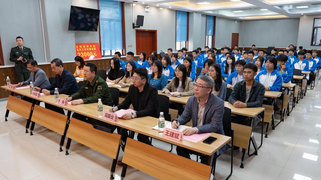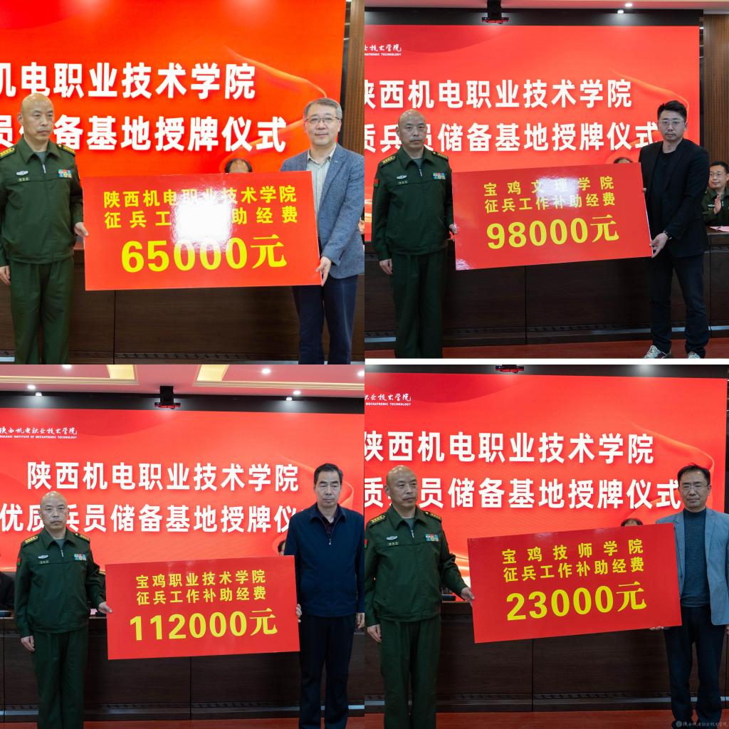 宝鸡市人民政府征兵办公室主任、市军分区副司令员杨红升,宝鸡市军分区动员处处长魏海峰,英国365上市公司党委书记伊逊智,党委副书记张琴,宝鸡市教育局调研员杨安福,宝鸡市人社局调研员万康出席,英国365上市公司、宝鸡文理学院、宝鸡职业技术学院、宝鸡技师学院等院校人武部部长参加,仪式由金台区人武部部长轩继东主持。