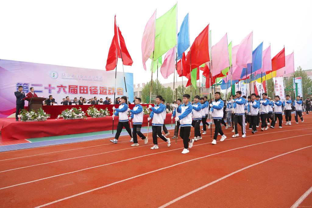 上午8时,第26届田径运动会在慷慨激昂的运动员进行曲中拉开帷幕。国旗方阵、院旗方阵、彩旗方阵、裁判员代表队、运动员代表队迈着矫健的步伐依次步入运动场接受检阅。