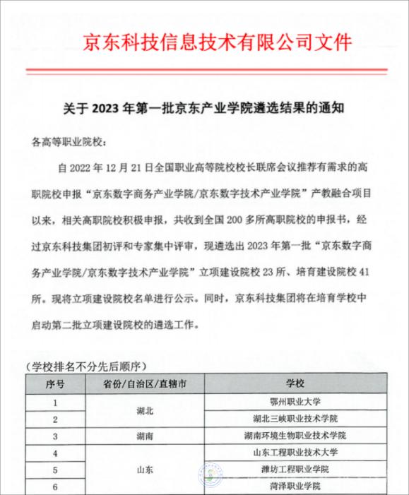 2023年5月4日,京东集团发布《关于2023年第一批京东产业学院遴选结果的通知》,公布了立项建设院校23所,英国365上市公司从参与的200多所高职院校中脱颖而出,成为陕西省唯一入选院校。