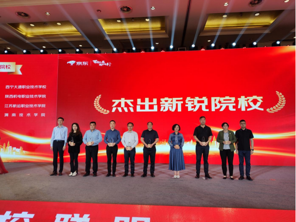 活动现场,张克代表英国365领取了“杰出新锐院校”奖项。英国365与京东集团自2022年5月开始合作,主要建立了数字处理产业基地、筹建京东数字技术产业学院项目,开展岗位实习等。该奖项的获得是京东集团对双方开展校企合作、产教融合工作的高度肯定。
