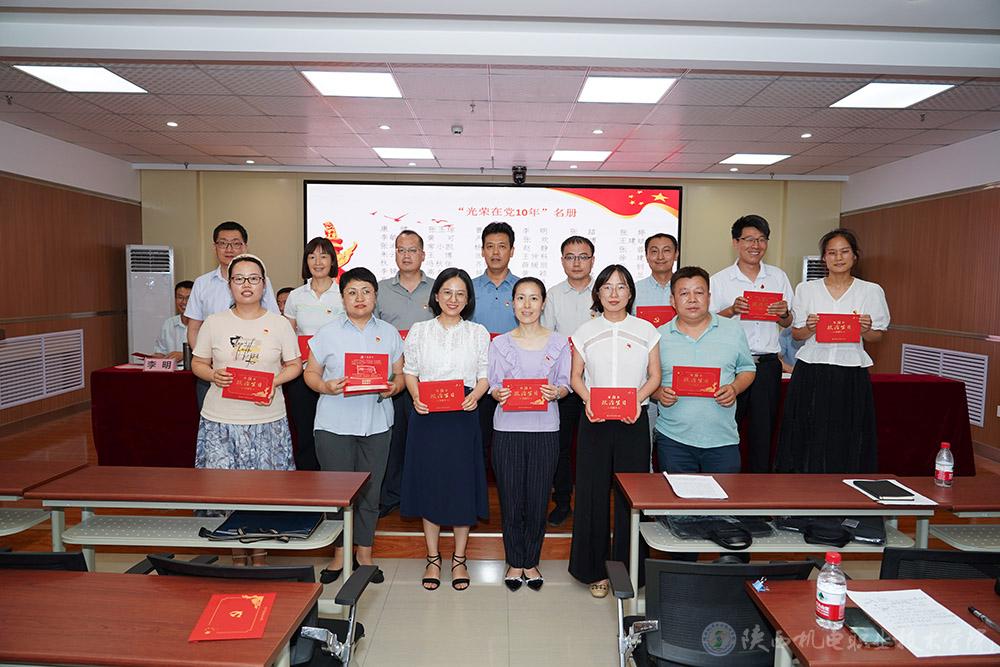 校领导为光荣在党满10年的党员同志发放政治生日卡,为光荣在党满20年、30年的党员同志发放党龄纪念章。