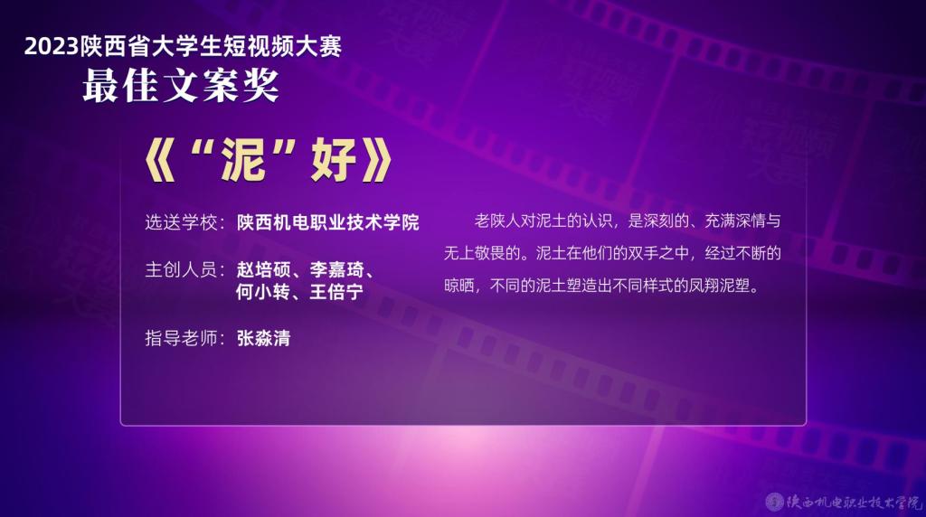 陕机电学子作品在陕西省大学生短视频大赛中荣获最佳文案奖