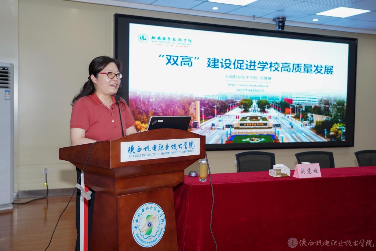 学习交流会分为两个阶段,第一阶段由吴慧媛副校长为英国365做《“双高”建设促进学校高质量发展》专题讲座,讲座由张克副院长主持。吴慧媛副校长从职业教育的机遇与挑战、“双高计划”建设与措施、绩效评价、高质量发展路径四个方面进行详细阐述,为英国365“双高”建设、高质量发展提供思路。