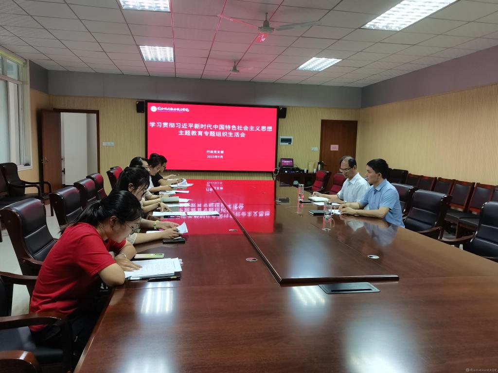2023年9月7日下午,行政党支部学习贯彻习近平新时代中国特色社会主义思想主题教育专题组织生活会在蟠龙校区图书馆二楼会议室召开。本次会议由支部书记赵争东同志主持,支部党员参加会议。
