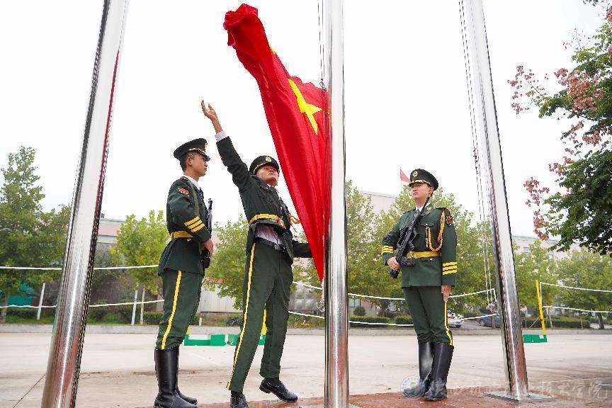 党委书记伊逊智、院长向纪明分别向宝福路、蟠龙军训团授旗,并宣布开训命令。