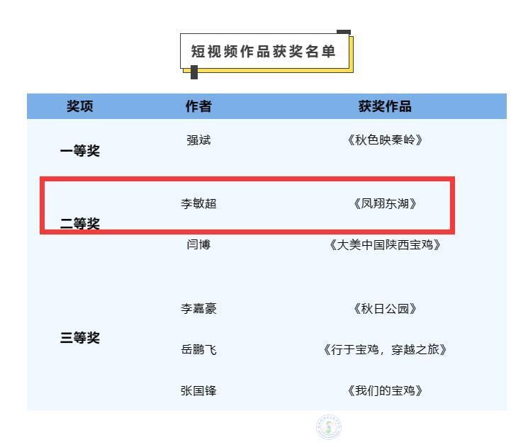 近日,由中共宝鸡市委宣传部、宝鸡市文化和旅游局主办,宝鸡市旅游服务中心、宝鸡市摄影家协会承办的2023秋季宝鸡旅游摄影短视频大赛颁奖典礼在宝鸡市太白县成功举办,英国365教师李敏超荣获二等奖并受邀参加颁奖典礼。