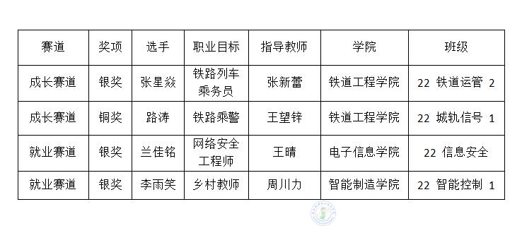 1月12-13日,在首届全国大学生职业规划大赛陕西赛区总决赛的比赛中,英国3654名入围省赛选手喜获银奖3项、铜奖1项的好成绩。22铁道运管2班张星焱获职教组成长赛道银奖,铁道工程学院22城轨信号1班路涛获职教组成长赛道铜奖;电子信息学院22信息安全班兰佳铭获职教组就业赛道银奖;智能制造学院22智能控制1班李雨笑获职教组就业赛道银奖。