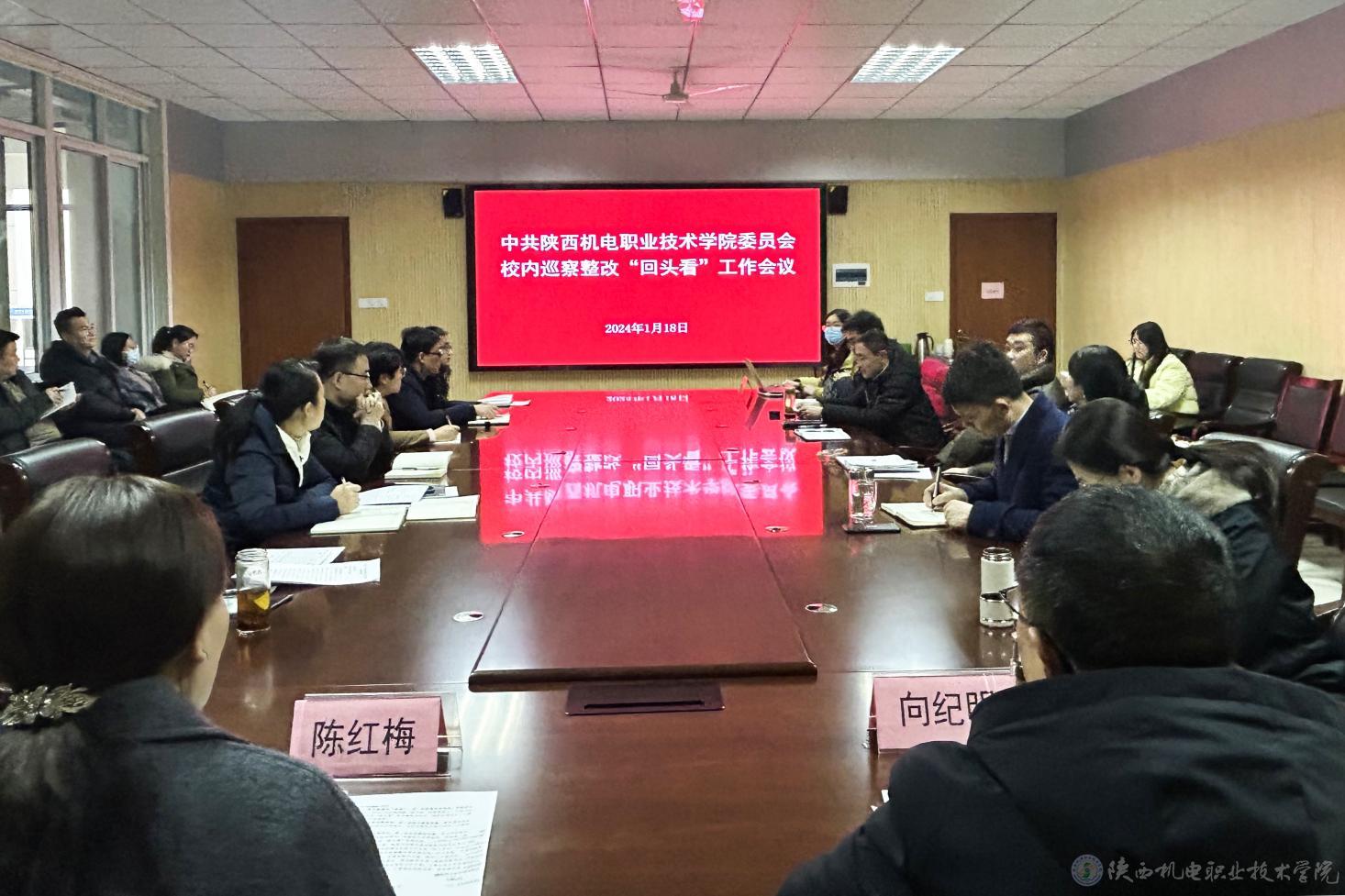 为进一步全面落实校内巡察整改和成果运用新要求,1月18日下午,学校党委在蟠龙校区图书馆二楼会议室召开校内巡察整改“回头看”工作会,学校党委巡察工作领导小组成员、2022年度校内巡察组成员、2022年度被巡察的三个党支部所辖部门科级以上干部、副高职称以上教师参加。会议由党委副书记、纪委书记、巡察组组长陈红梅主持。