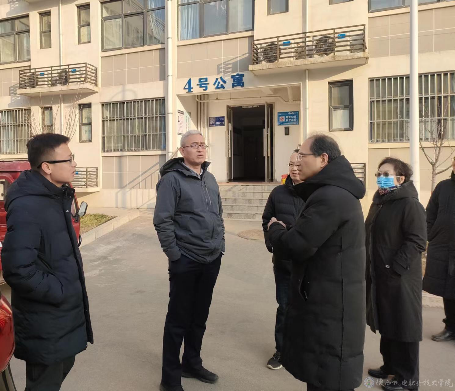 1月26日,省发改委社会处副处长强伟,干部张小飞一行调研学院蟠龙校区学生宿舍项目,学院党委书记伊逊智陪同。