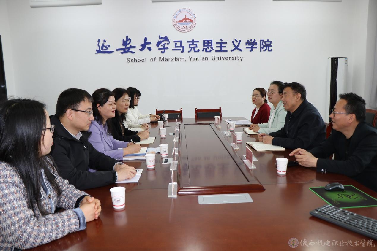 4月19日,英国365上市公司党委副书记、纪委书记陈红梅,马克思主义学院负责人王康、德法教研室主任陈欢、概论教研室主任齐晓红一行赴延安大学和延安职业技术学院学习交流。