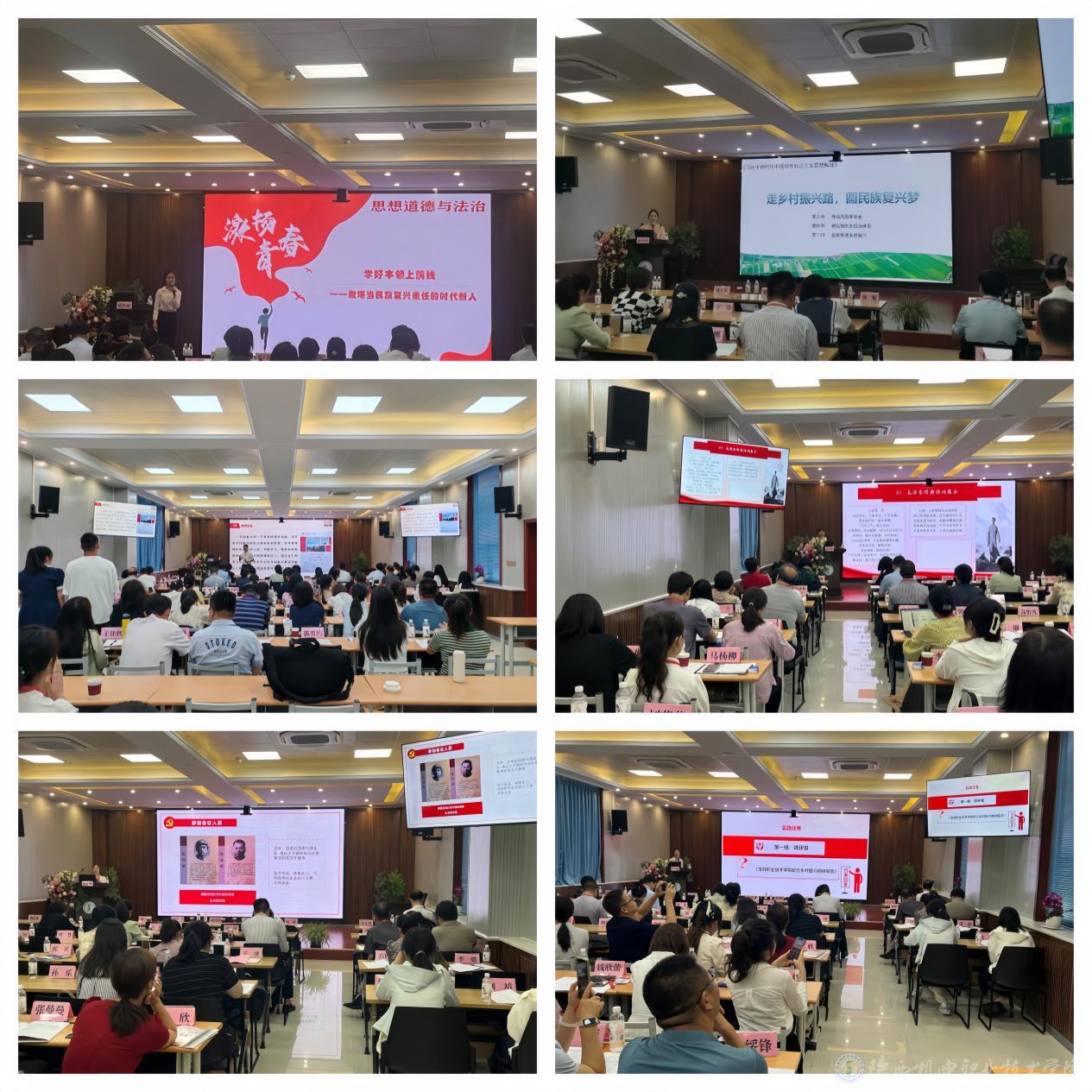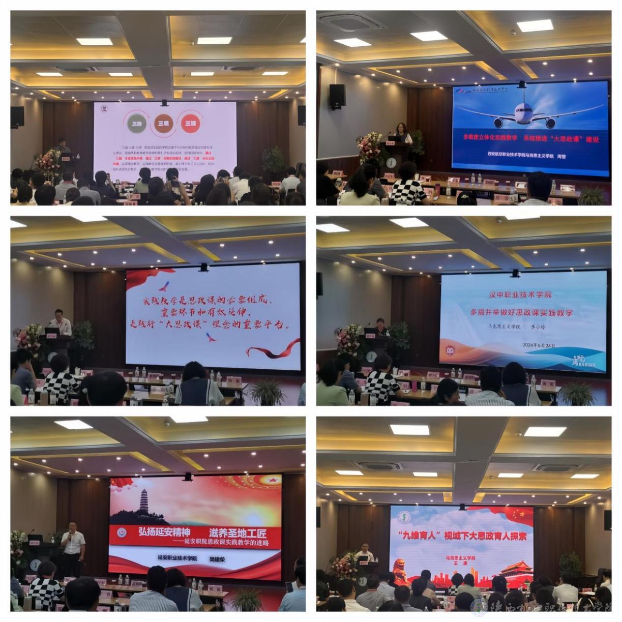 陕西工业职业技术学院李昊楠以《学好本领上前线— 做堪当民族复兴重任的时代新人》、陕西国防工业职业技术学院高怡凡以《走乡村振兴路 圆民族复兴梦》、陕西能源职业技术学院的郝宇刚以《图说改革开放·农村改革的六次创举》、商洛职业技术学院刘萍萍以《毛泽东思想永放光芒—赏诗词 强精神 毛泽东诗词赏读实践教学活动》、铜川职业技术学院马杨柳以《红色记忆·陈家坡会议》和宝鸡职业技术学院刘婷婷以《全面推进乡村振兴》为题分别进行了思政课实践教学展示。