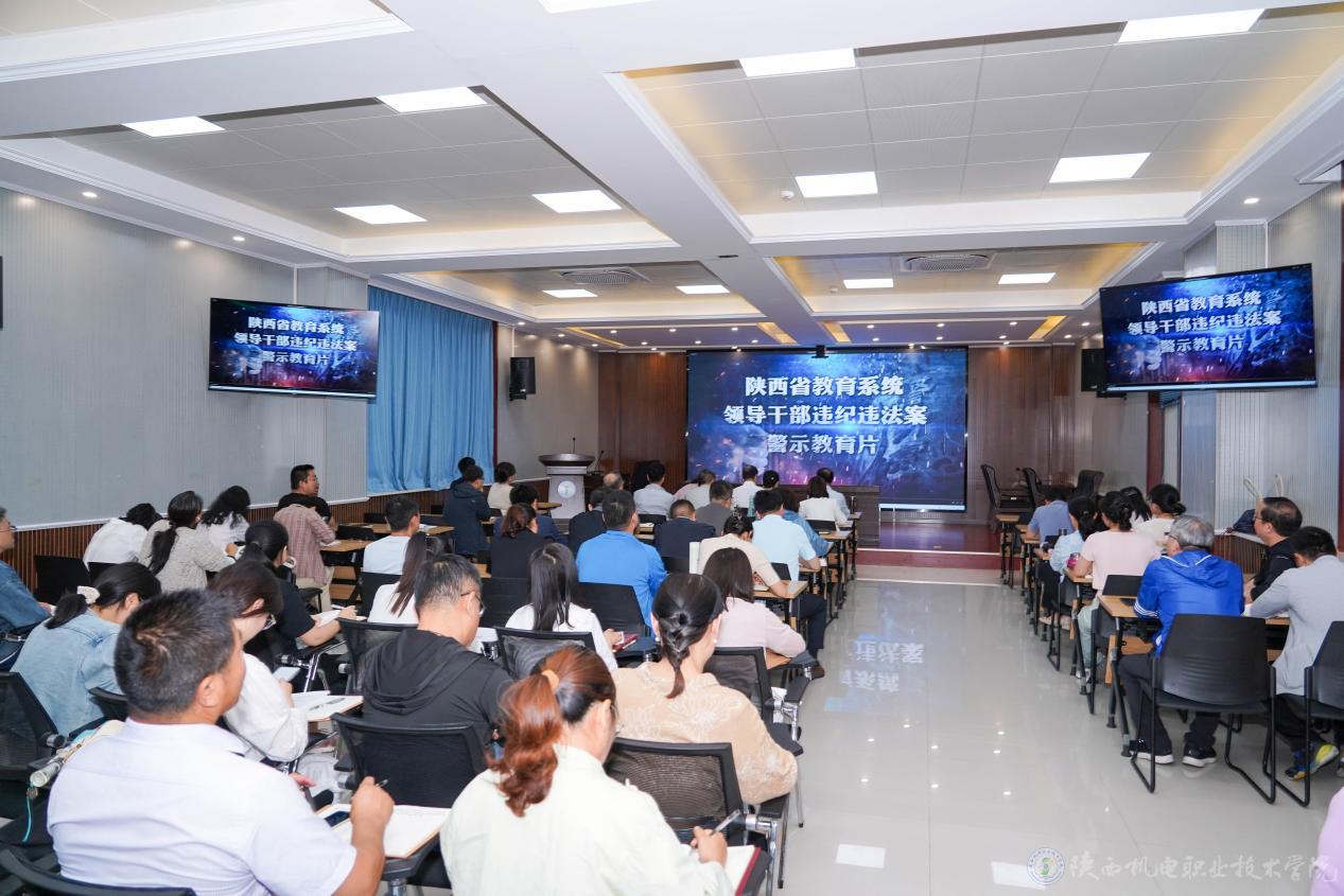 会议组织观看了陕西省教育系统领导干部违纪违法案警示教育片,传达了《新时代陕西省教育系统党员领导干部进一步加强党风廉政建设十条措施》文件精神,解读了2023版《中国共产党纪律处分条例》(以下简称《条例》)。