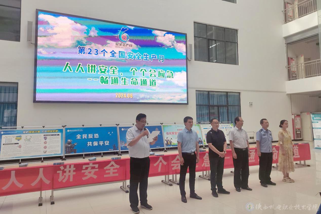 伊逊智指出,今年是第23个全国“安全生产月”,宣传主题是“人人讲安全、个个会应急——畅通生命通道”,学校党委高度重视“安全生产月”活动,成立以党委班子成员为组员的工作领导小组及各处室、二级学院负责人为组员的工作执行小组,明确工作目标,细化工作任务,形成学校党委全面领导、各处室、二级学院协同落实、全员广泛参与的工作机制。希望各位老师,同学们认真参观学习,做安全知识的教育者、监督者、宣传者,共同维护安全稳定的校园环境。