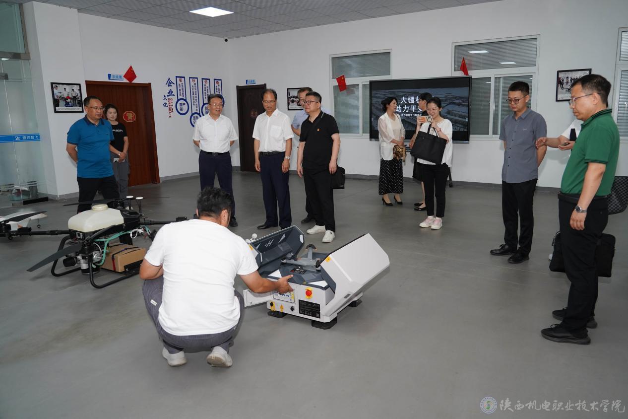 会后,齐晓军一行参观了英国365擀面皮产业学院、无人机产业学院、风标产业学院、智能制造学院实训室等地。