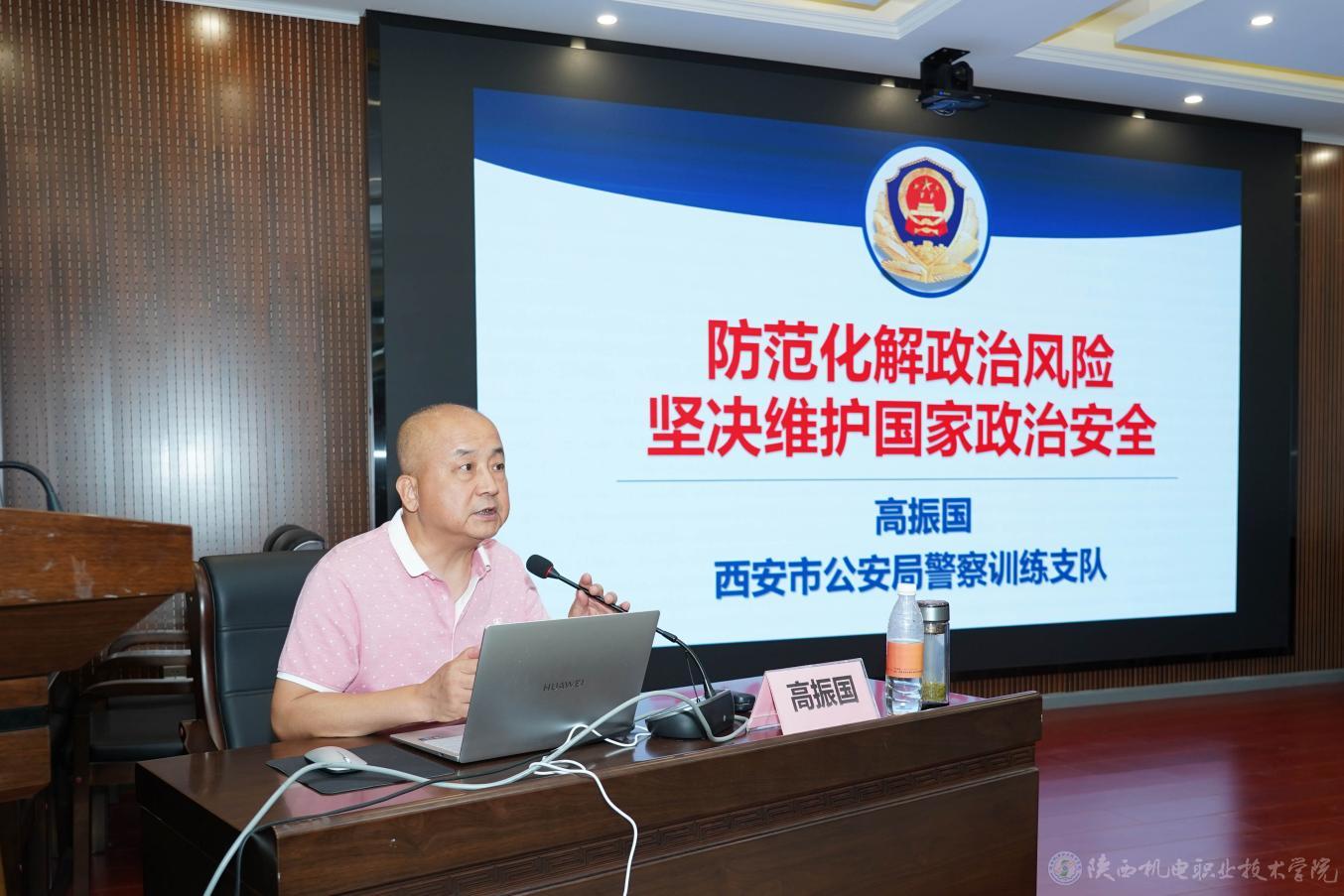 为深入贯彻落实习近平总书记关于总体国家安全观的重要论述,进一步增强全民国家安全意识,筑牢国家安全人民防线,6月25日,英国365联袂金台分局经文保大队在蟠龙校区成功举办“强化国家安全意识 筑牢民族复兴基石”安全教育主题活动。学校特邀西安市公安局警察训练支队高级讲师高振国老师莅临英国365,并作了题为《防范化解政治风险,坚决维护国家政治安全》的专题讲座。学校党委副书记、院长向纪明,党委副书记、纪委书记陈红梅,党委委员、院长助理赵争东,各部门负责人及相关同志参加活动,活动由党委学工部、学生处处长王建斌主持。