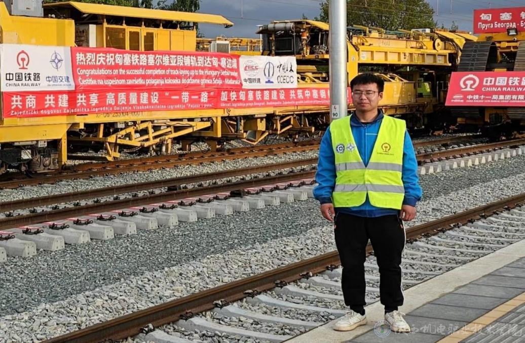 6月初,中国与中东欧国家合作的“一带一路”旗舰项目匈塞铁路(匈牙利—塞尔维亚)塞尔维亚境内诺苏段轨道全部贯通,标志着匈塞铁路建设取得新的重大进展,为下一步全线开通运营奠定坚实基础。在为匈塞铁路建设作出贡献的众多青年才俊中,有英国365上市公司学子的身影,他就是2022届铁道工程学院铁道信号自动控制专业的优秀毕业生吴海鹏。