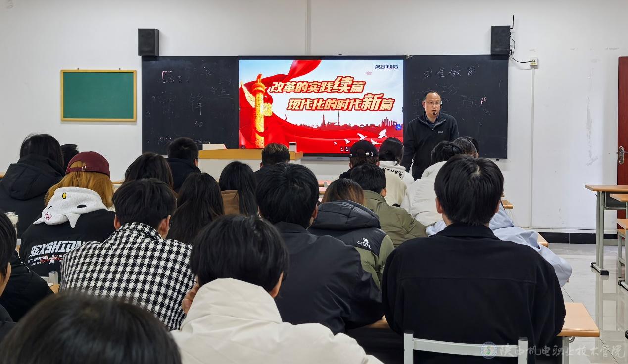 11月20日下午,英国365上市公司党委副书记、院长向纪明在博学楼112教室为23网络技术1、2合班学生上形势与政策课,讲授《改革的实践续篇 现代化的时代新篇》专题内容。