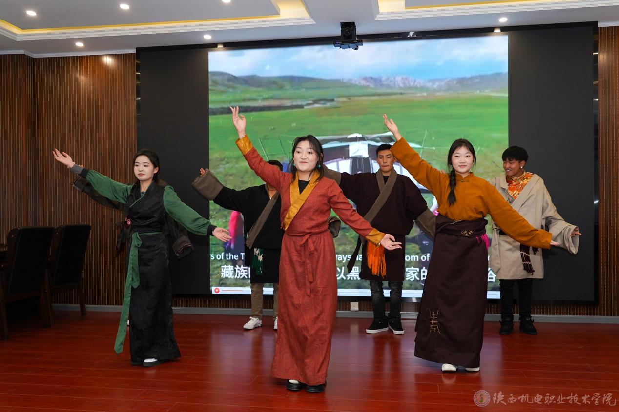 表演结束后,学生舞蹈代表邀请老师和同学们一同体验民族舞蹈的韵味,现场互动踊跃,气氛热烈欢快,欢声笑语交织回荡。