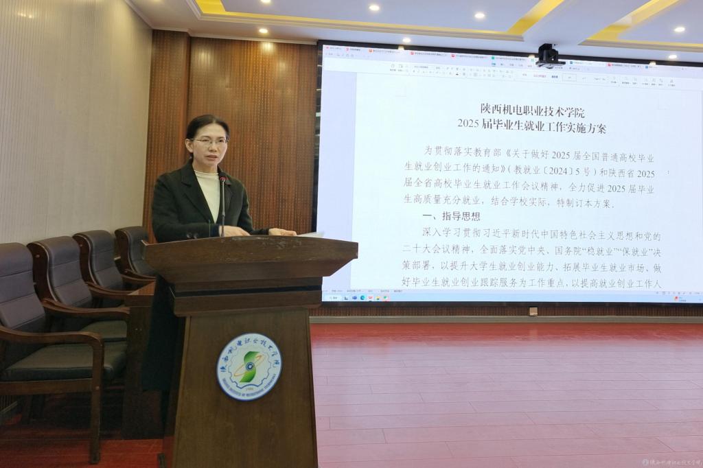 会上,招生就业处处长朱云洁通报2024年就业工作情况,并从招聘会开展、访企拓岗、就业材料收集和困难群体帮扶等方面安排部署2025年就业工作。