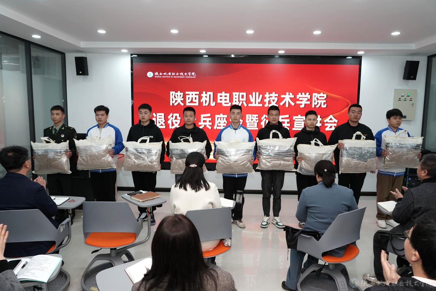 本次座谈会,旨在深入了解退伍大学生回归校园后的学习生活状况,协调解决面临的实际困难,引导他们将钢铁意志转化为求学奋进的精神动力,在学校各项活动中贡献力量。会后为退役学生代表发放了慰问品。