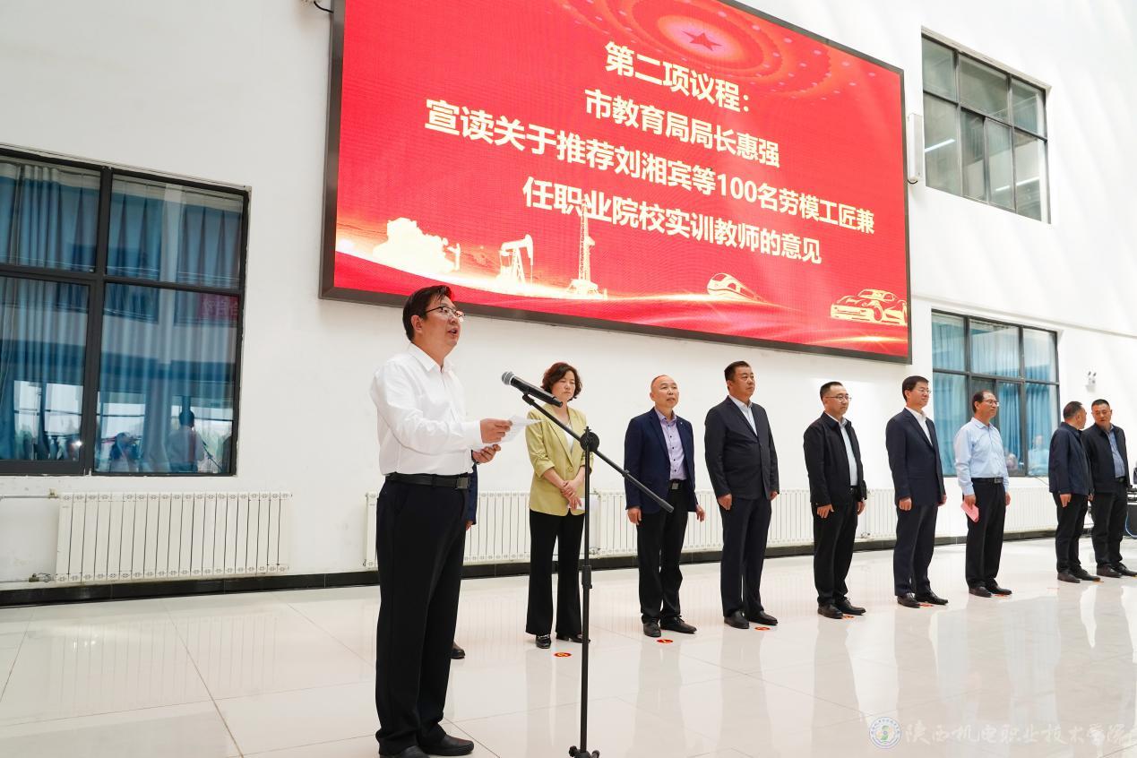 惠强宣读关于推荐刘湘宾等100名劳模工匠兼任职业院校实训教师的意见