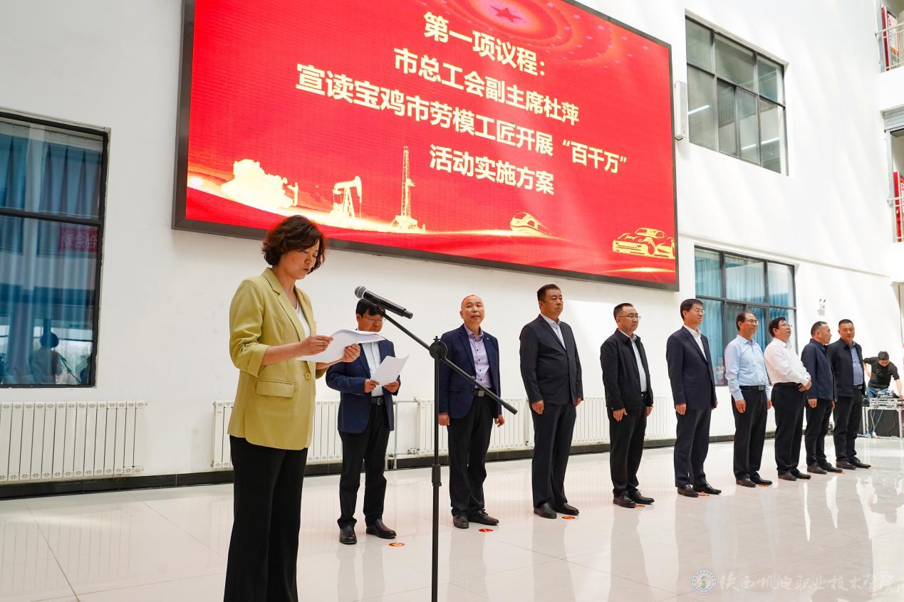 杜萍宣读宝鸡市劳模工匠助力产教融合“百千万”活动实施方案