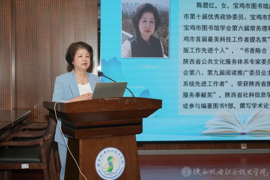 学校还邀请到宝鸡市图书馆原副馆长,研究馆员陈碧红为与会师生作题为《厚德强技,让阅读赋能成长》的主题讲座,陈馆长以校训“厚德强技 立身立业”开题,深入讲述人为什么要读书、读好书,并引导学生探讨网络时代手机及短视频影响下如何保持阅读习惯、工业流水线模式下如何通过阅读改变人生赛道、理工科学生是否需要读文史类书籍、AI时代需不需要阅读等。讲座内容深入浅出,入脑入心,师生收获颇丰。