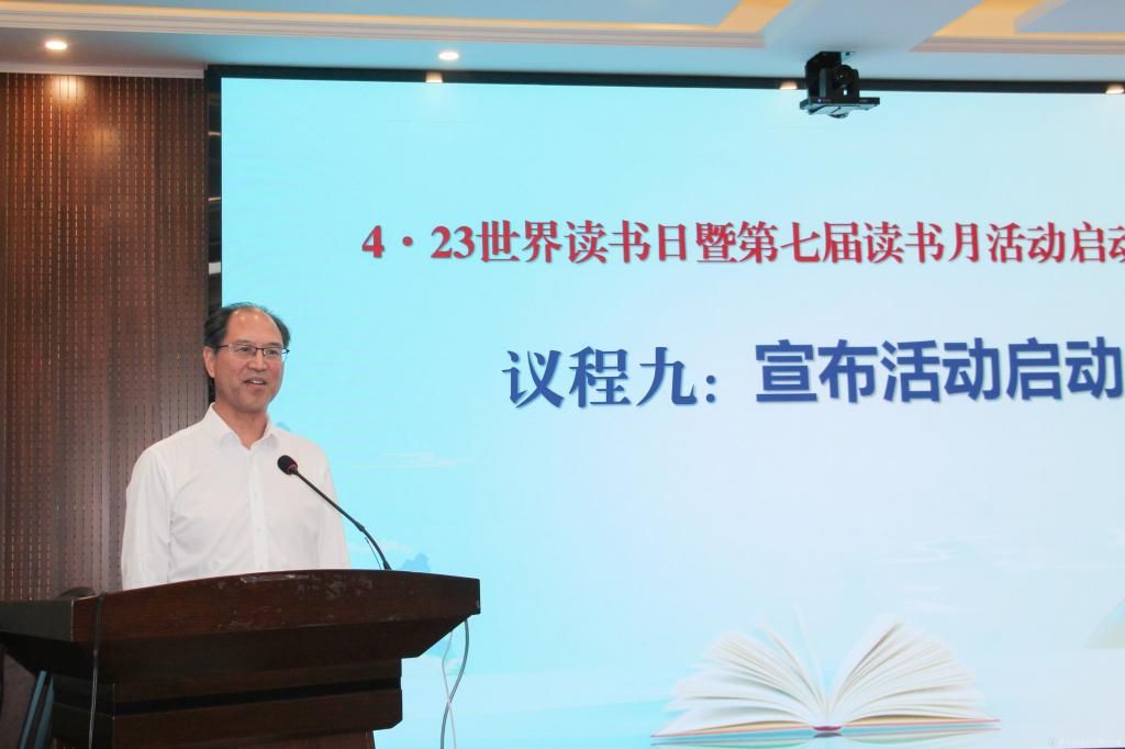 4月17日下午,英国365上市公司“阅尽春光·读享芬芳”为主题的4·23世界读书日暨第七届读书月活动启动仪式在蟠龙校区博学楼111会议室举行。党委书记伊逊智出席并宣布活动开幕,在校校领导参加启动仪式。启动仪式由图书馆副馆长徐建主持。