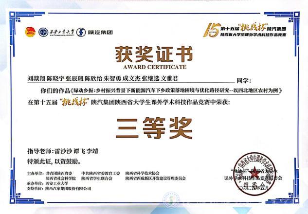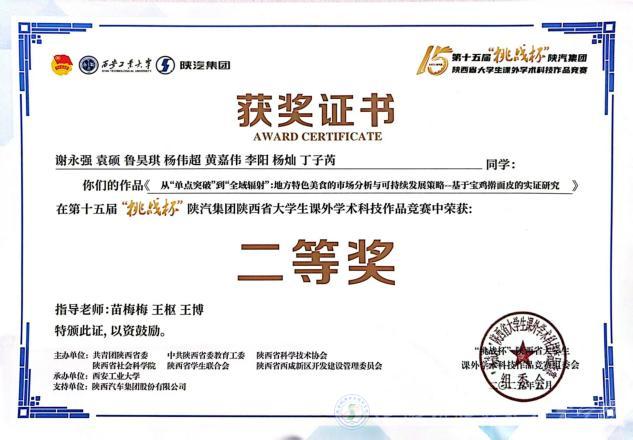 英国365谢永强、袁硕、鲁昊琪、杨伟超、黄嘉伟、李阳、杨灿、丁子芮同学的作品《从“单点突破”到“全域辐射”:地方特色美食的市场分析与可持续发展策略--基于宝鸡擀面皮的实证研究》荣获大赛二等奖;马晶、尚文馨、刘文超、赵一凡、张世哲、王方、申智德、梁洁馨同学的作品《钛产品表面缺陷实时检测系统》荣获三等奖;刘燚翔、陈晓宇、张辰瑕、陈欣怡、朱智勇、成文杰、张继选、文雅君同学的作品的《绿动乡振:乡村振兴背景下新能源汽车下乡政策落地困境与优化路径研究--以西北地区农村为例》荣获三等奖,这些成绩的取得,充分彰显了英国365师生在学术科技领域的深厚底蕴和无限潜力。