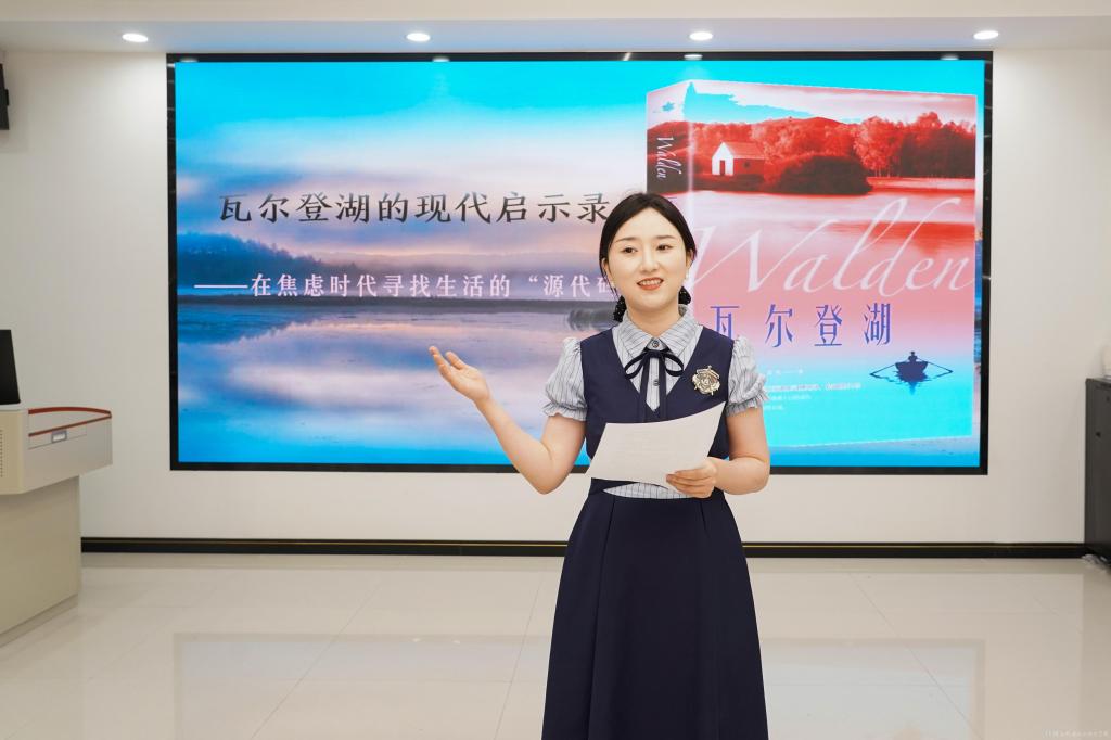 现场气氛紧张有序,选手们或慷慨激昂,或娓娓道来,每一个细节都牵动着评委和观众的心。一号选手董妍以史铁生《我与地坛》为载体,在沉静有力的叙述中探讨生命的坚韧与价值;二号选手武小元通过对《瓦尔登湖》的独到诠释,将梭罗的自然哲学与当代生态文明建设深刻联结;三号选手郭阳深情讲述《苦难辉煌》,将军旅生涯的信仰坚守与工会工作者的责任担当娓娓道来;四号选手黄晓璐借《敦煌本纪》绘就一幅文化守护的壮美画卷,展现莫高窟精神与教育使命的共鸣;五号选手杨颖则从《蛤蟆先生去看心理医生》出发,用温暖专业的语言剖析现代人的心理困境与成长。每位选手都以独特的视角和饱满的热情,赢得了现场观众的阵阵掌声。