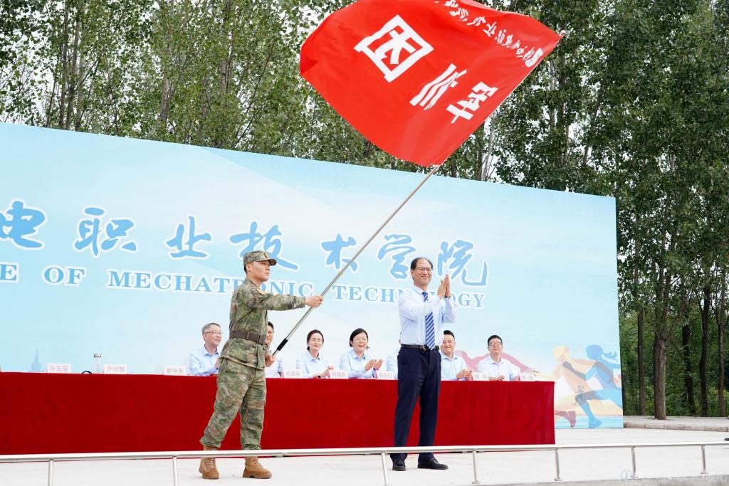 校领导在讲话中首先向承训部队干部、教官致以崇高敬意,对来自五湖四海的新生表示欢迎,随后分别从靠“硬实力”筑根基、炼“铁意志”能扛事、以“三颗心”敢担当和走“三条路”成栋梁等四个方面向同学们指明了前进的方向,并赠送了同学们三句话:技能是铁饭碗,本事是硬道理;青春不躺平,奋斗才出彩;强国不靠喊,关键看行动。希望同学们带着嘱托,全力投入学习与军训,努力成为德智体美劳全面发展的新时代大学生!